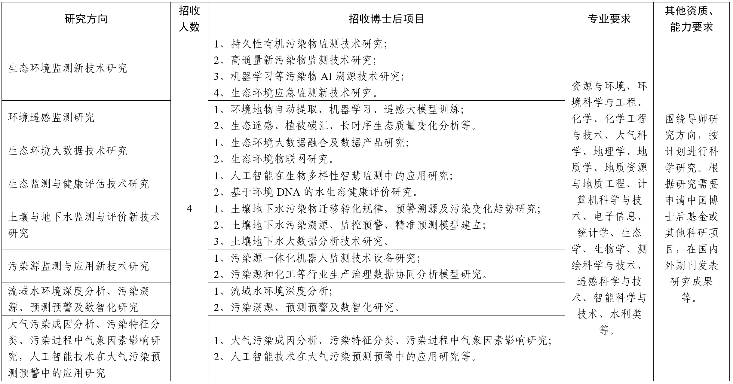 浙江省生态环境监测中心博士后工作站招聘公告